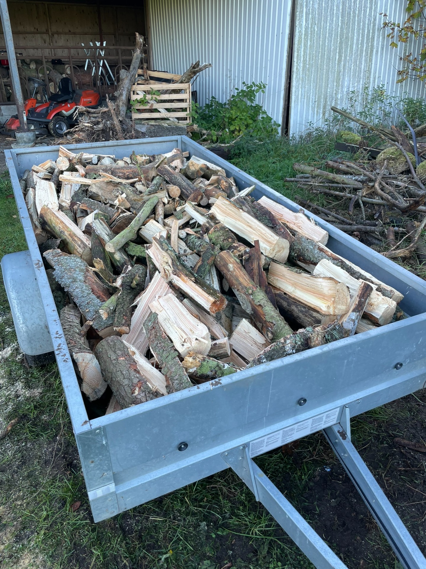 Prisen er pr. kassemeter. Dette svarer til en kasse på 1m x 1m x 1m hvor brændet er løst hældt ned i. Vi opmåler din trailer ved ankomst og fylder den.